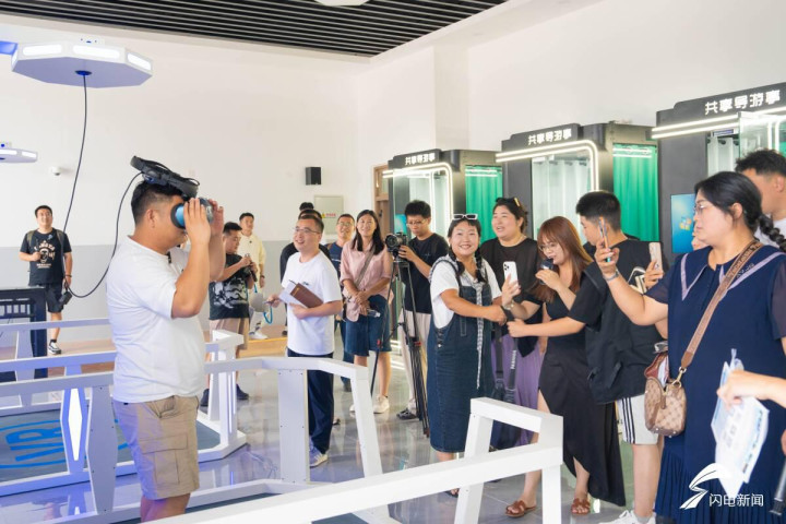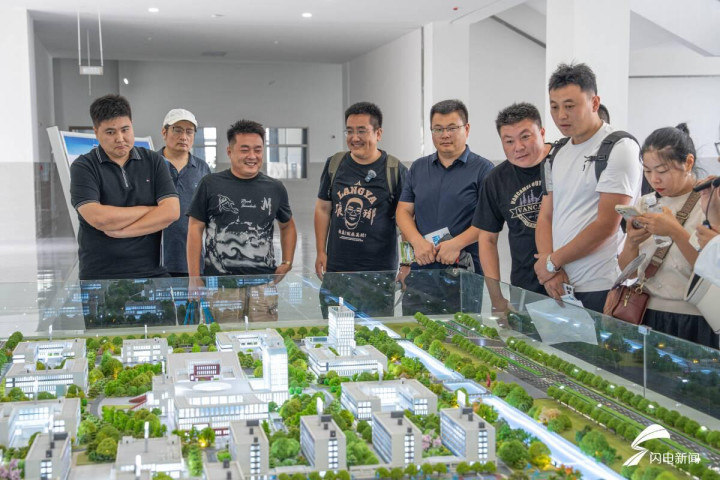 在学院沙盘前,现代化校园的规划与完善的功能分区尽收眼底,让媒体达人对学院的整体布局有了初步的印象。随后,达人们深入各个学院,开启了一场科技与教学深度融合的探秘之旅。